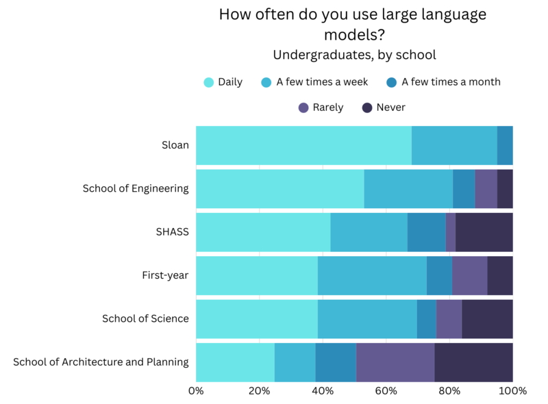 Overall, 46% of undergraduates reported using LLMs daily. Karie Shen–The Tech Dec. 1, 2025 Facebook Twitter Reddit Print Overall, 46% of undergraduates reported using LLMs daily. Karie Shen–The Tech