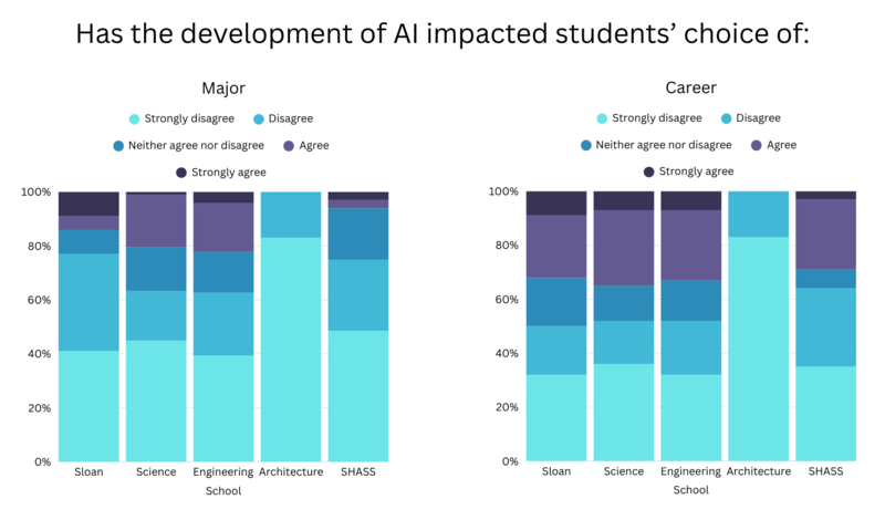 The development of AI tools has moderately impacted choices of major, career, extracurricular activities, and classes.